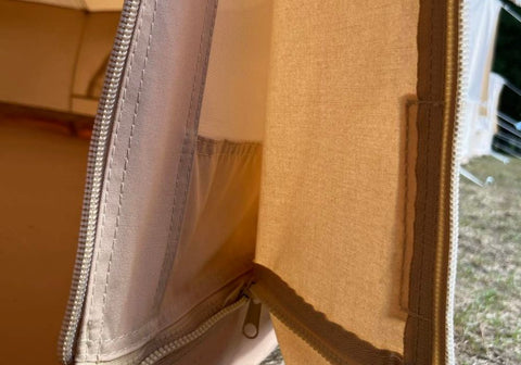 Alla ingångar är försedda med myggnät som förhindrar insekter från att ta sig in. Samtidigt får man extra frisk luft i tältet.